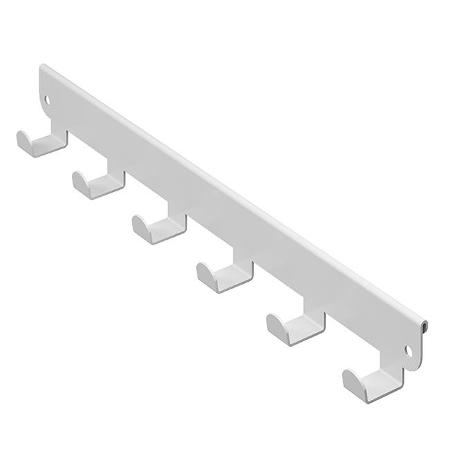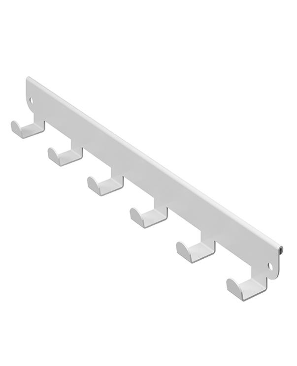 Панель с боковыми крючками позволяет оптимизировать пространство и обеспечить удобное хранение мелких вещей и аксессуаров: ремней, галстуков, шарфов, курток. Крючки боковые представляют собой металлическую планку на 6 или 8 крючков (для кронштейнов глубиной 335 и 435 мм), которая навешивается на внешнюю боковую поверхность кронштейна в гардеробной системе ПРАКТИК Home.